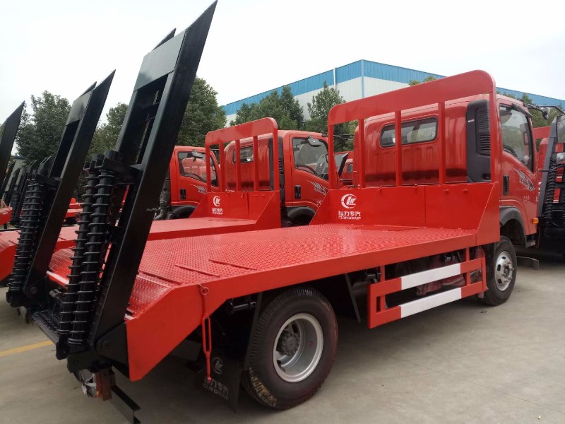 重汽王牌(蓝牌)平板运输车,云内发动机130马力,8档变速箱带高低档,中控锁、ABS,轴距3360mm, 8.25-16轮胎,230车架,8吨后桥,整车尺寸(mm):平板尺寸(长宽):双爬梯,双支腿;后轮距2.18米可过限宽道路,乡村道路专用平板运输车;
